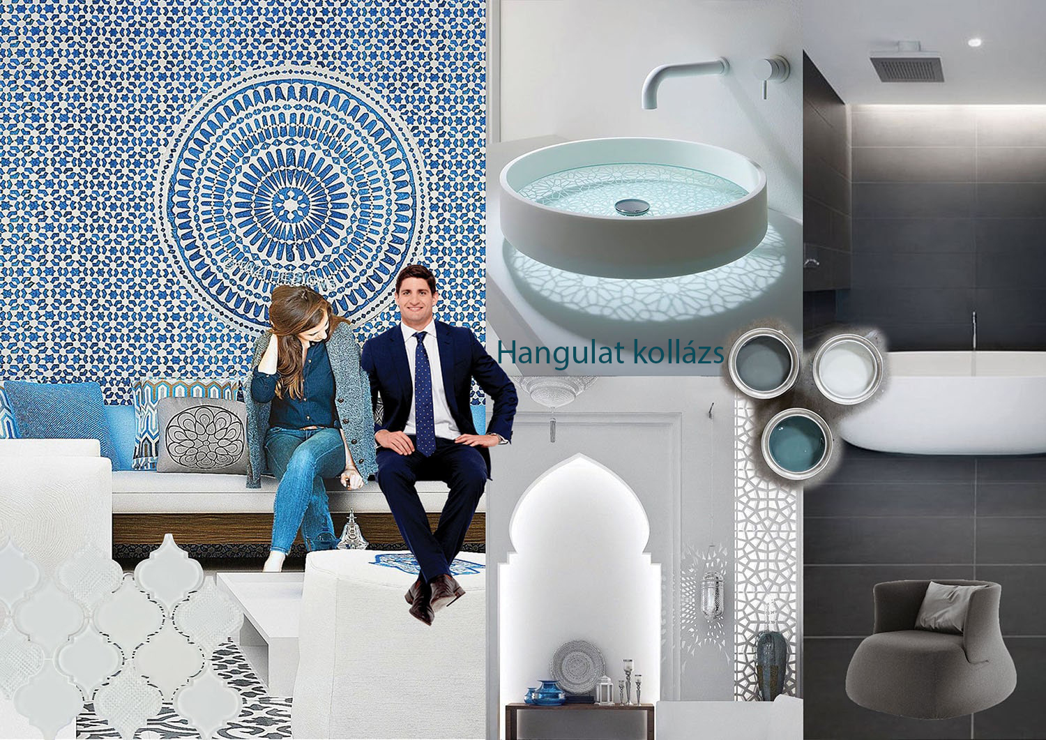 Lakberendezés referenciám egy 40 éves házaspár családi házának terveit mutatja be. A hölgy lakberendező, aki a pince átalakításával egy lakberendezési üzletet szeretne nyitni illetve a földszinti lakórész átalakítása volt a másik feladat. A stílus modern, egy csipetnyi arabbal kombinálva, mivel utazásaik során nagyon megkedvelték ezt a stílust, alapszínnek pedig a fekete-fehéret határozták meg.